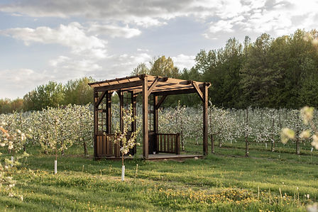 The Perfect place for an intimate wedding. The stained glass gazebo is nestled in the rows of apple trees with the rolling hillside providing this beautiful backdrop for your very special day.